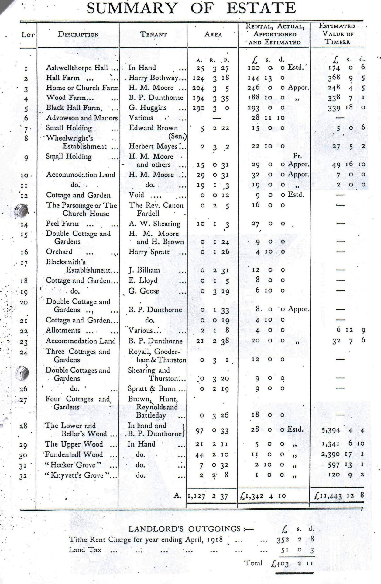 some of the other Lots. Lower Wood and Fundenhall Wood were sold to the